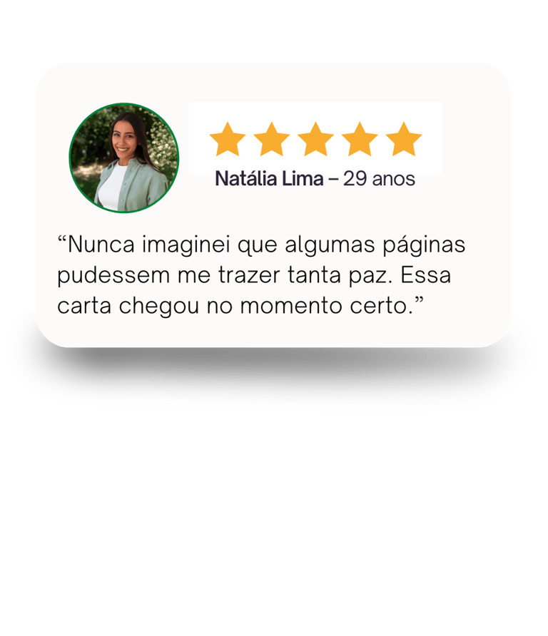 Uma carta devocional feita com base na SUA história! Você não chegou aqui por acaso. Se a tua alma anda cansada, confusa ou em silêncio… Deus ainda está falando. E essa pode ser a resposta que você tanto orou para ouvir.